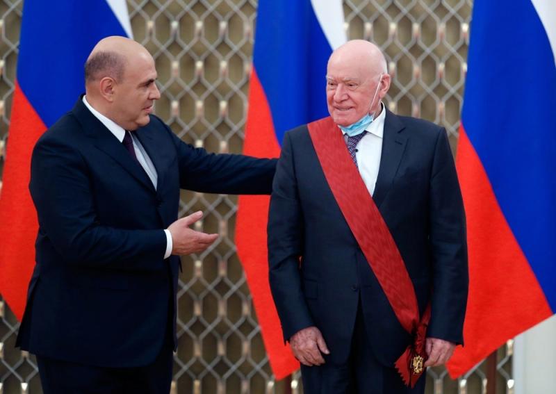 22 октября 2020. Председатель правительства РФ Михаил Мишустин и президент Национального медицинского исследовательского центра сердечно-сосудистой хирургии имени А. Н. Бакулева Лео Бокерия (справа), удостоенный ордена «За заслуги перед Отечеством» I степени, на торжественной церемонии вручения государственных наград Российской Федерации медицинским и другим работникам сферы здравоохранения. Фото: РИА Новости/ Дмитрий Астахов