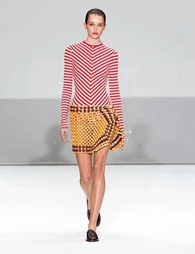 Юбка из массажного коврика: ностальгия по 1990-м также вошла в обиход модниц. Например, датский дизайнер Дуран Лантинк предложил неожиданную интерпретацию предмета из прошлого.