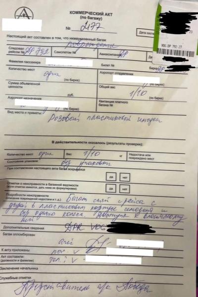 Как выглядит акт о повреждении или утрате багажа и что в нем должно быть