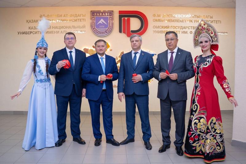 В ноябре 2024 года во время государственного визита Путина в Астану российский президент вместе с казахстанским коллегой в режиме видеоконференции официально открыли филиал КазНУ в Омске. Министр науки и высшего образования Республики Казахстан Саясат Нурбек обратился к лидерам государства со словами: «Филиал готов к открытию!»
