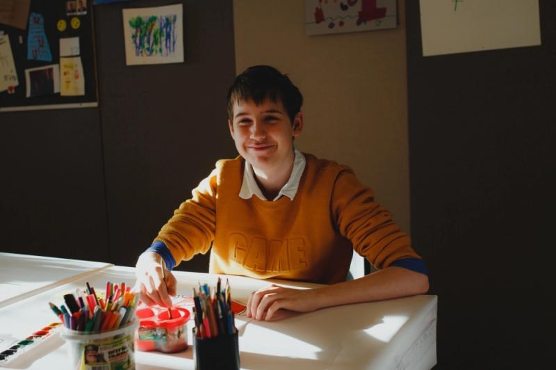Аутичный мастер за работой в художественной мастерской. Фото предоставлено благотворительным фондом «Антон тут рядом»
