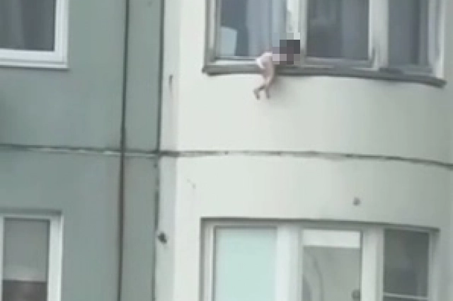 Ребенок практически полностью высунулся из окна 12-го этажа. Кадр видео