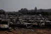 Сгоревшие автомобили после лесного пожара в Дыми, Греция. © Reuters