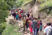 Люди пользуются импровизированным мостом, чтобы пересечь реку в районе, пострадавшем от наводнения, вызванного сильным дождём, в городе Часоти. © Reuters
