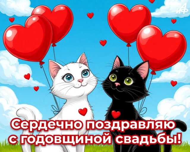 Вкусы у всех разные, и в открытках с годовщиной свадьбы это также нашло отражение: одним нравятся цветы, другим — котики, кому-то важнее романтика и постоянный медовый месяц, а есть и те, кто ставит во главу угла лебединую верность. Для всех у нас найдутся красивые и яркие открытки. Чтобы скачать их, просто нажмите кнопку и сохраните понравившуюся картинку в памяти телефона или компьютера, а потом рассылайте в личных сообщениях, в мессенджерах и чатах тем, кого хотите поздравить с радостным событием.