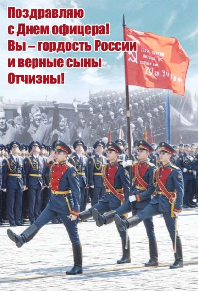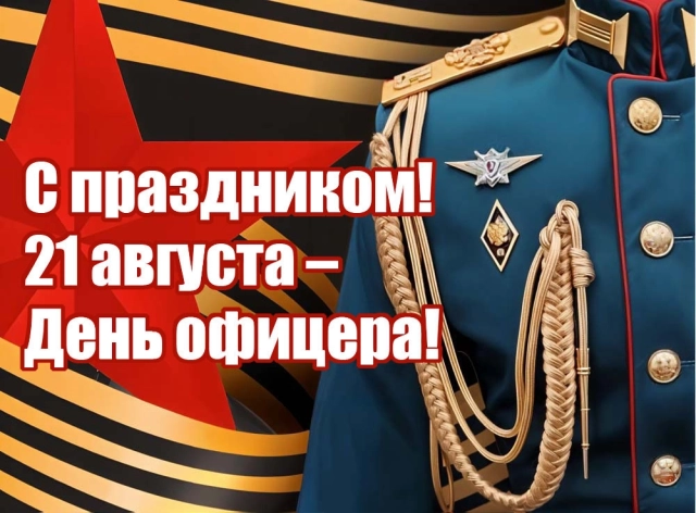 21 августа в России отмечается День офицера. Праздник для тех, кто выбрал трудный, но славный путь — служить родной стране и народу. В этот день принято поздравлять действующих офицеров Вооруженных сил РФ и офицеров запаса, а также офицеров Росгвардии, ФСБ и других правоохранительных органов. Не забудьте отправить красивую отурытку с теплыми пожеланиями и ветеранам, и курсантам военных академий, и воспитанникам суворовских училищ — все они будут рады вниманию в этот день.