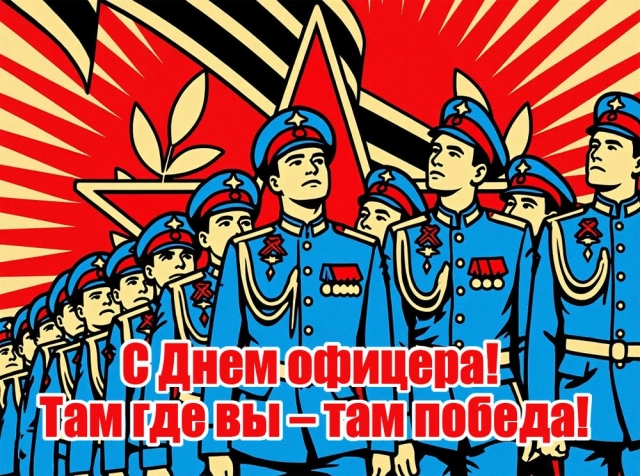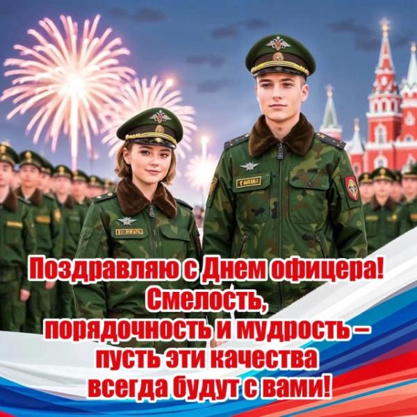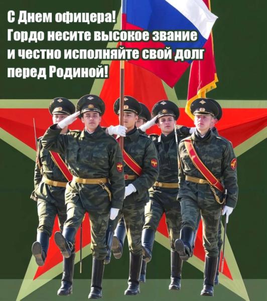 Отправляйте яркие и красивые открытки всем, кого вы хотите поздравить с этим замечательным праздником. Покажите, как вы гордитесь друзьями и родственниками, которые с честью носят офицерские погоны. Для того, чтобы скачать бесплатно любую открытку, нажмите на кпонку и затме сохраните картинку в память телефона, ланшета или компьютера. Это можно делать без ограничений, скачайте хоть весь набор — мы только рады будем! А потом уже рассылайте открытки в чаты, мессенджеры и личные сообщения. А можно и на странице в соцсети разместить — так вы поздравите с праздником всех, кто ее увидит.