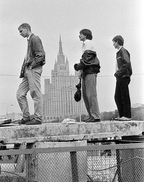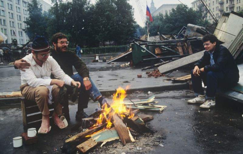 Люди на баррикадах перед Белым домом 21 августа 1991 г. © russianlook.com