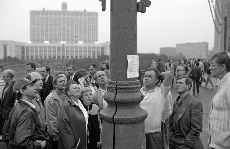 Горожане читают листовки, расклеенные на улицах города, после введения чрезвычайного положения в августе 1991 года © РИА Новости / Владимир Федоренко