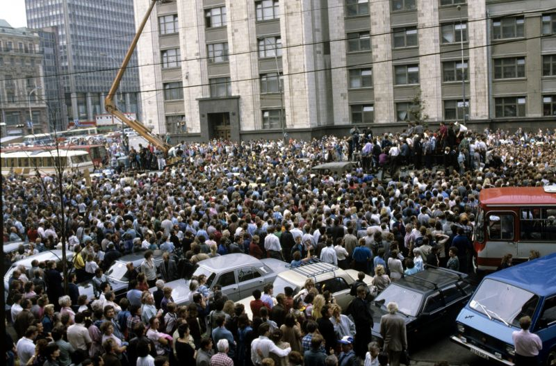 Люди перед Белым домом 21 августа 1991 г. © russianlook.com