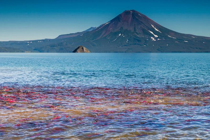Несколько миллионов нерок ежегодно приходят сюда на нерест, превращая воду в живую алую реку. Курильское озеро — крупнейшее нерестилище нерки в Евразии и источник жизни для сотен других видов, от медведей до микроводорослей.