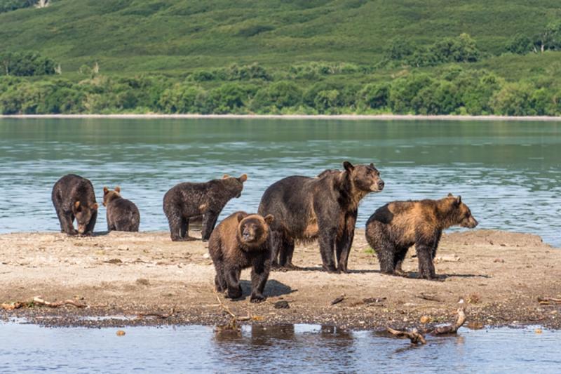 Курильское озеро — одно из лучших мест в мире для наблюдения за бурым медведем в естественной среде. Здесь медведи охотятся, играют, воспитывают потомство — всё это происходит на фоне вулканов и зеркальной воды, без вольеров и барьеров.