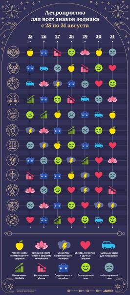 Астрологический прогноз с 25 по 31 августа 2025 года. Инфографика