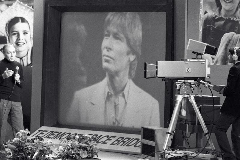 Совместная советско-американская телевизионная передача, посвященная памяти Саманты Смит, «Космический мост Миннесота — Москва»,1985 год. Фото: РИА Новости/ Юрий Сомов