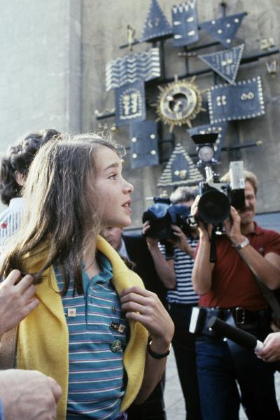 Американская девочка Саманта Смит, посетившая СССР по приглашению Генерального секретаря ЦК КПСС Юрия Андропова, перед зданием Государственного Центрального театра кукол. Дата события: 01.08.1983 Фото: РИА Новости/ Юрий Абрамочкин