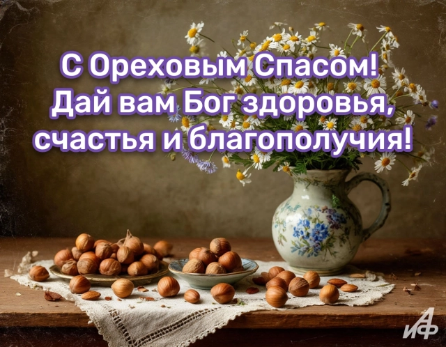 На Ореховый Спас всем родным и знакомым нужно постараться сказать что-то хорошее. Несколько ласковых, душевных или ободряюзих слов помогут вам выразить свою любовь и заботу о близких. Мы подготовили много ярких открыток с Третьим Спасом, чтобы вы могли отправлять их друзтям и коллегам, не повторяясь — выбирайте для каждого индивидуальное пожелание и красивую картинку.