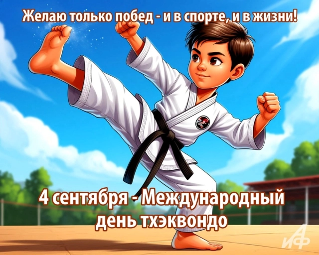 Международный день тхэквондо — 4 сентября. Этот вид боевых искусств популрен в нашей стране, поздравьте всех, кто занимается профессионально или «чисто для себя», и, конечно же, тренеров — мастеров единоборств.