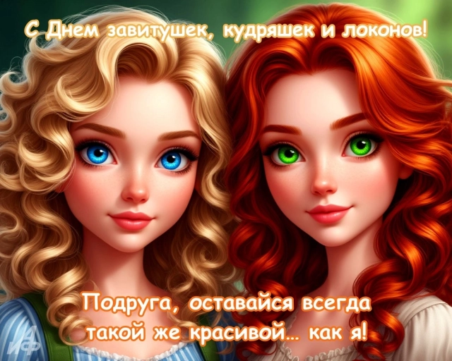 День кудряшек и локонов — 16 сентября. Поздравляйте всех родных и близких, у кого волосы вьются от природы. Но и тем, кто делает завитушки самыми разными способами, тоже отправьте открытку — пусть знают, что вам нравятся их прически!