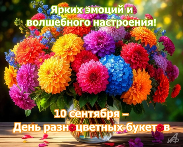Если будете дарить букеты 10 сентября, избегайте белых роз и грасных гвоздик. Потому что это День разноцветных букетов. Хотите порадовать любимых, родных и друзей — отправьте им эту открытку.