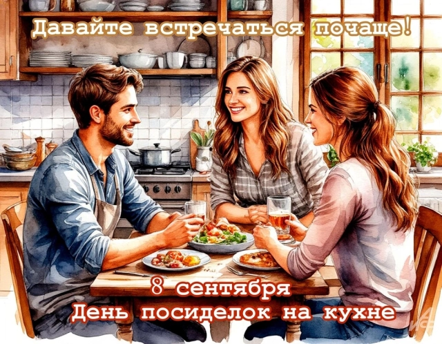 Или отметьте вместе День посиделок на кухне. Это праздник с особой атмосферой уюта и домашнего тепла, лучше всего провести его с самыми близкими друзьями. А если не получится быть рядом в этот день — отправьте красивую открытку, чтобы поделиться теплом и уютом на расстоянии.