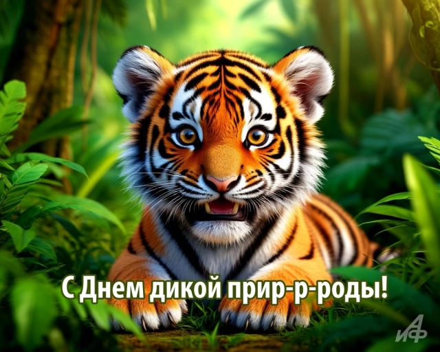 День дикой природы — праздник, который призван обратить внимание на проблемы зверей из Красной книги. Ну и просто приятно отправить друзьям красивую открытку с амурским тигром.
