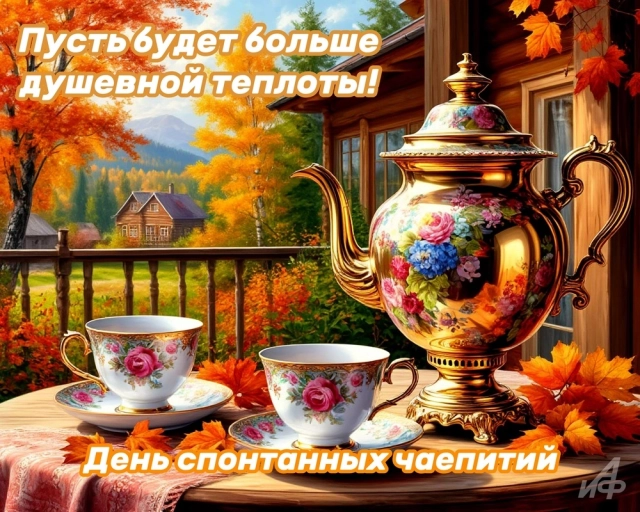 Также 20 сентября — День спонтанных чаепитий. В этот день принято устраивать чаепития, причем спонтанно. Ну да, тут вы и сами бы догадались, без подсказок. Собирайте друзей или коллег в непривычное для нихвремя и в совершенно неожиданном месте. Если они удивятся — значит, вы отмечаете праздник правильно. А открытку можно использовать, как приглашение. Только отправляйте ее за 5 минут до начала, чтобы все было реально спонтанно.