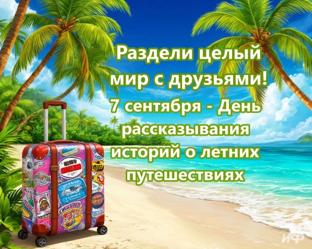 День расказывания историй о летних путешествиях — это отличный повод для встречи с друзьями. Так что эта красивая открытка может считаться приглашением.