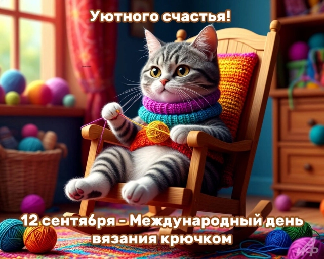 Международный день вязания крючком не случайно расположился в середине сентября. Если начнете вязать что-нибудь теплое,  пушистое и уютное прямо сейяас, то как раз успеете до первых холодов. А если сами ничего не понимаете в изнаночных петлях — отправьте открытку тем, кто умеет и любит вязать. Пусть им станет тепло и уютно от вашего поздравления.