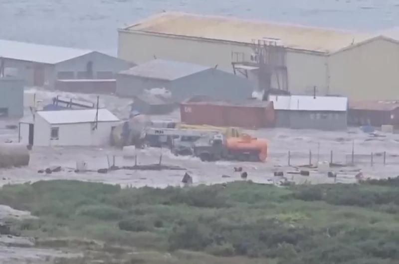 На Северо-Курильск обрушилось цунами. В результате затопило рыбоводный завод. © Пресс-служба Агентства по делам ГО, ЧС и ПБ Сахалинской области