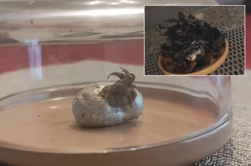 По словам мужчины, в конце августа он обнаружил серебристый камень в кратере в Панаме. Он забрал находку домой, где из нее стали появляться ростки, либо конечности инопланетянина.