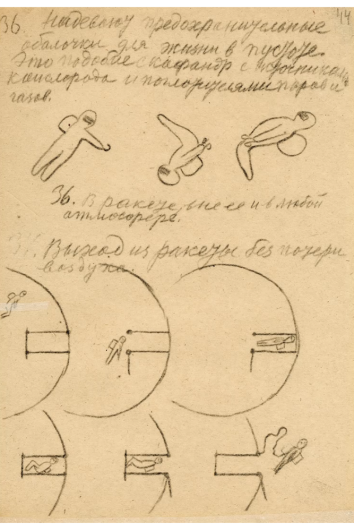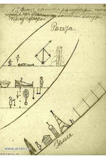Рисунки и чертежи Константина Циолковского к фильму «Космический рейс»