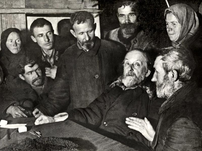 Константин Циолковский общается с колхозниками после своей лекции. Фото: Public Domain