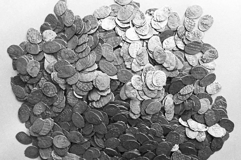 Русские серебряные монеты XVI-XVII веков, найденные в Рязанской области при постройке дома в селе Выползово. Государственный Эрмитаж в Ленинграде. Фото: РИА Новости/ Б.Манушин