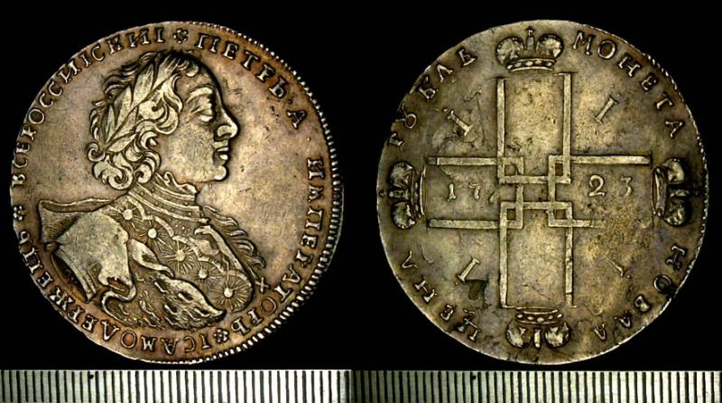 Монета номиналом 1 рубль 1723 года выпуска. Фото: Commons.wikimedia.org