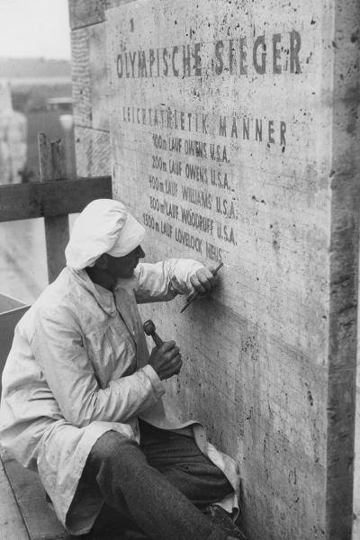 Резчик по камню вырезает победителей по легкой атлетике на Олимпийских играх в Берлине 1936 года. Фото: www.globallookpress.com