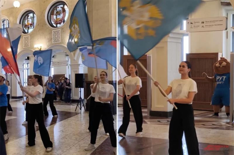Парад флагов и показ фирменной формы выглядели масштабно, хоть и казалось, что места для такого грандиозного действа было маловато. Активисты подняли флаги России, московского спорта и самого университета. А студенты продемонстрировали гостям все виды обмундирования работников транспортной сферы — от парадно-выходной формы до повседневной и рабочей.