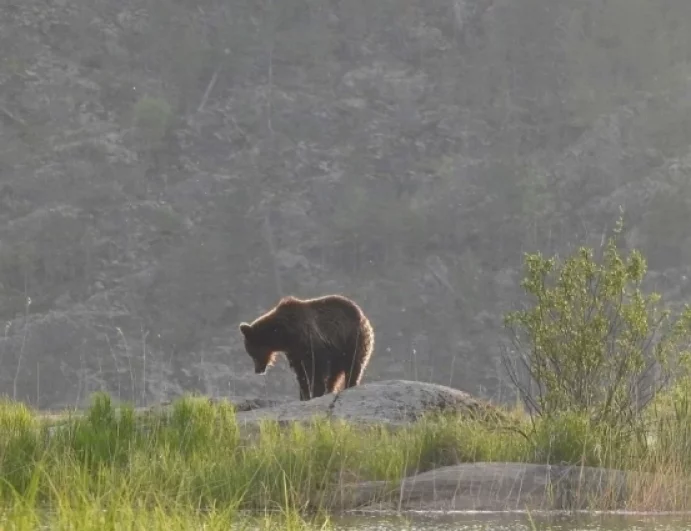 Карельский медведь позировал в лучах закатного солнца в День России. © Личных архив Яны Пеккинен / Яна Пеккинен