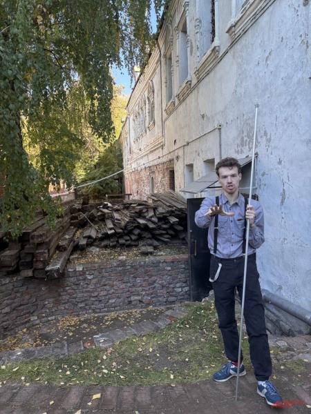 Историк Дмитрий Фоломеев на фоне масштабного ремонта в бывшем монастырском саду у Китайгородской стены. Фото: АиФ/ Юлия Тутина