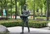 Бюст Льва Яшина у главного входа в Российский университет спорта (Сиреневый бульвар, 4). кадр из видео
