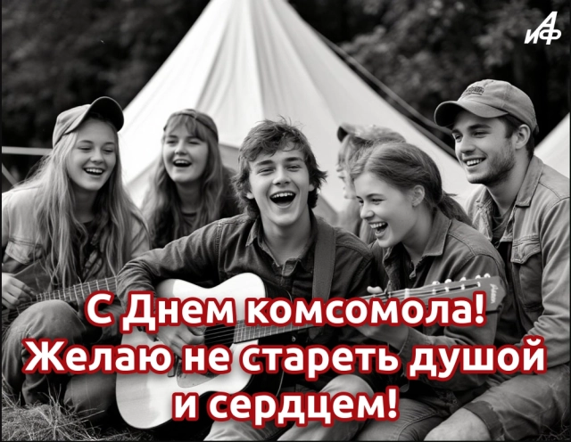 Все эти яркие эмоции, мечты и знаменитый комсомольский задор мы постарались передать в открыткам из этого набора. Скачайте бесплатно все красивые картинки, которые вам понравились и отправляйте их друзьям и родным, с которыми хотите поделиться позитивным настроением в этот день.