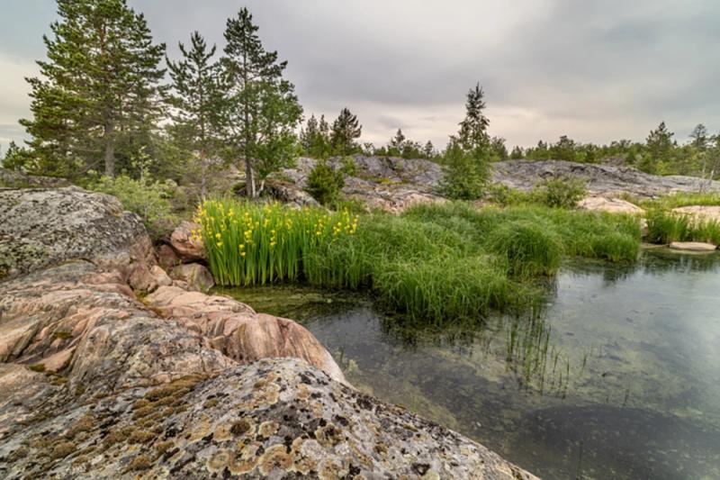Граница воды и земли в шхерах — не линия, а зона. Здесь всё перемешано: корни сосен нависают над гладью, а водоросли растут на камне. Утки выводят утят на гранитные полянки, а чайки вьют гнёзда среди сосен. В этом переходе от воды к суше обитает самая упрямая жизнь.