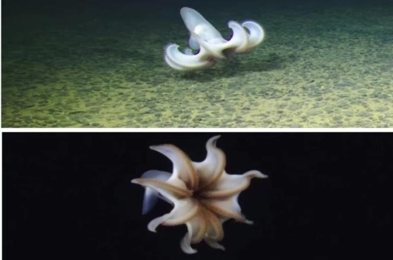По словам исследователей, Cirroteuthidae умеют передвигаться двумя способами – при помощи плавников или перепонк с щупальцами.