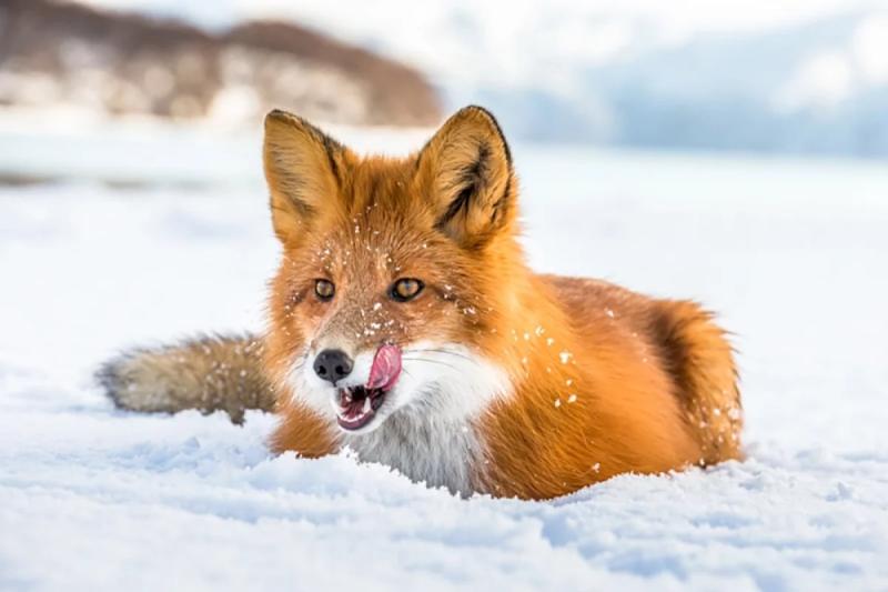 Я встретил её на берегу Курильского озера в конце октября. «А ведь совсем скоро день лисы», — подумал я. Снег уже укрыл землю плотным белоснежным ковром. Медведи постепенно исчезали, готовясь к зимнему сну. Лисы, наоборот, словно понимали, что пришло их время, и выходили на охоту среди бела дня. Эта огнёвка только что закончила мышковать, и, сытая и довольная, прилегла на снег, облизнулась, вспоминая свою недавнюю добычу. Её взгляд был устремлён куда-то вдаль, как будто она не просто отдыхала, а обдумывала что-то важное. Мне даже показалось, что в тот момент она была где-то далеко — возможно, в другом месте, в другой жизни.