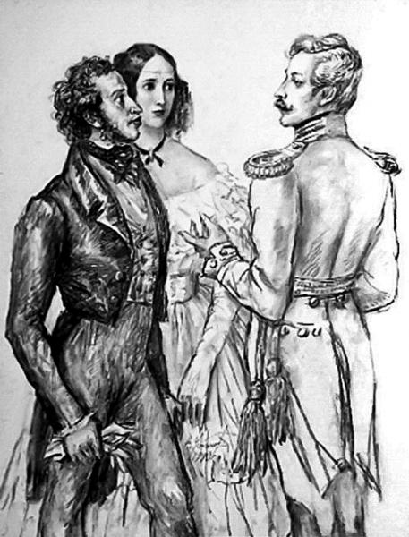 Пушкин, Дантес и Наталья Гончарова. Источник: public domain