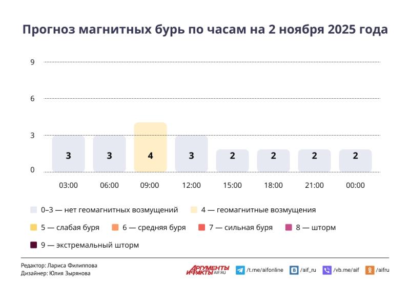 Почасовой прогноз магнитных бурь по московскому времени смотрите в инфографике aif.ru.