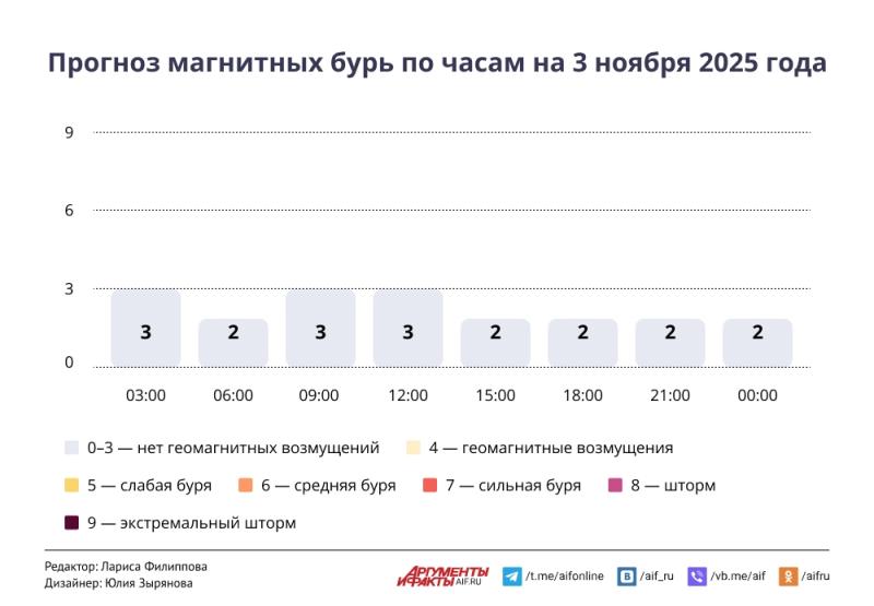 Почасовой прогноз магнитных бурь по московскому времени смотрите в инфографике aif.ru.