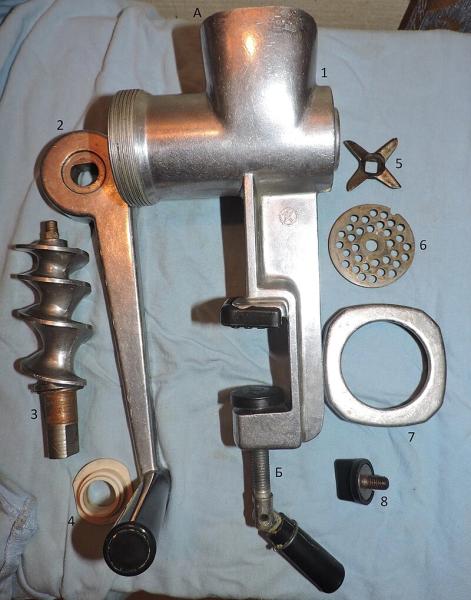Если проследить этапы модификаций советских мясорубок, то можно увидеть, что они незначительны. Помимо чугуна изделия также изготавливались из алюминиевых сплавов, однако чугун, тяжёлый и долговечный, был в приоритете. Деревянные детали на ручках со временем были заменены на пластиковые. На винтовом креплении появились резиновые накладки-протекторы, чтобы мясорубка не скользила по поверхности стола.