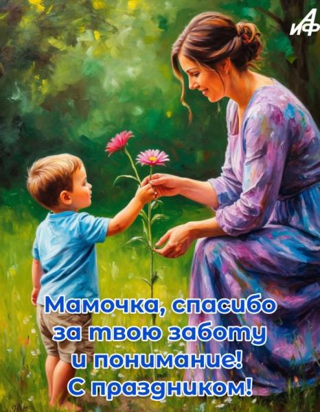 Мама — это хранительница домашнего очага, наша опора и вдохновение. Материнская любовь самая чистая и бескорыстная, она не требует ничего взамен, но наполняет сердце уверенностью и покоем. Именно к маме мы в любой ситуации обращаемся за советом, поддержкой и добрым словом. С праздником, дорогие мамы!