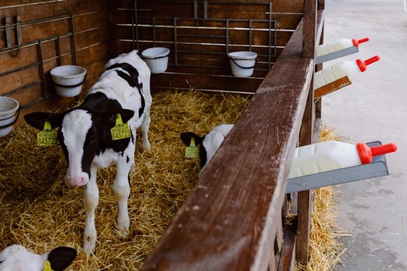 На ферме в Добрино выращивают коров голштинской породы, которая считается настоящей находкой для молочного хозяйства. Ее главные достоинства — высокая продуктивность (взрослая корова может давать 35-40 литров молока в сутки) и приспособленность к широкому диапазону температур — от −25 до +25 градусов. Телята этой породы рождаются весом 35–40 кг. Первые 12 часов жизни они проводят в специальном предродовом отделении, где за их состоянием внимательно следят работники: проверяют дыхательные пути, обрабатывают пуповину, взвешивают и помещают в индивидуальные сушильные домики. Очень важно напоить телёнка молозивом, чтобы он рос здоровым и крепким.