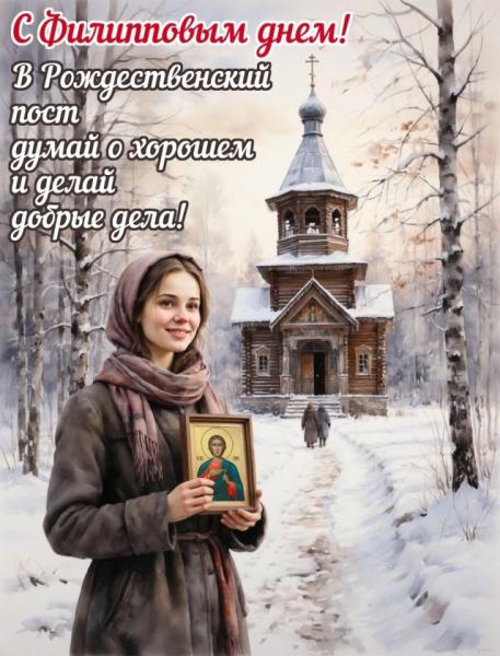 Скачайте бесплатно открытки из этого набора, они подходят не только для поздравления с Филипповым днем и началом Рождественского поста. Есть и те, что можно отправить в любой момент, чтобы напомнить друзтям и родным о важности укрепления веры. Все 40 дней поста верующие читают утренние и вечерние молитвы, чтобы очистить душу и подготовиться к исповеди и причастию перед Рождеством.